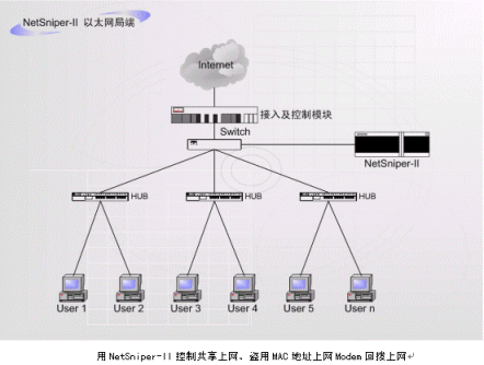 使用NetSniper-II可以有效的控制共享上網(wǎng)、盜用MAC地址上網(wǎng)和Modem回撥上網(wǎng)的情況。