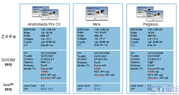 捷德是較早參與手機(jī)電視項(xiàng)目的廠商之一。目前,捷德公司支持手機(jī)電視的產(chǎn)品主要包括USIM卡產(chǎn)品與SD卡產(chǎn)品兩種,其性能分別如下所示: