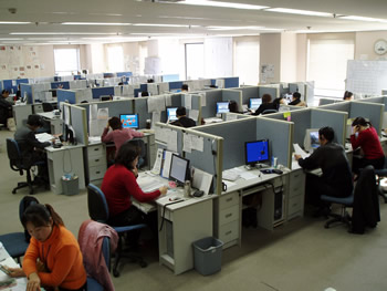 當(dāng)你站在這布局緊湊但井井有條、具有典型日式風(fēng)格的辦公大廳里,看到這些彬彬有禮的座席代表,耳邊又不時(shí)傳來各種聲調(diào)的日語時(shí),你會(huì)毫不懷疑地認(rèn)為自己是在東京或是橫濱的某個(gè)大公司的呼叫中心里。然而,從大廈的窗外望去,遠(yuǎn)處聳立的大連電視塔和眼前的勞動(dòng)公園都提醒你:這是在中國大連的商業(yè)區(qū)中心。