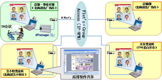 此次開(kāi)始投入運(yùn)行的IP電話(huà)系統(tǒng),在其總部導(dǎo)入了“IPstage SX”,通過(guò)沖電氣的“Com@WILL軟電話(huà)”具有的TV會(huì)議功能,能將包括總部在內(nèi)的北海道3個(gè)事業(yè)所與關(guān)東營(yíng)業(yè)所進(jìn)行電話(huà)聯(lián)網(wǎng)。各個(gè)事業(yè)所之間通過(guò)NTT東日本的IP-VPN服務(wù)“Flet's・Group”實(shí)現(xiàn)相互連接。