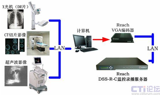 同時(shí),銳取多媒體系統(tǒng)前端VGA編碼器將采集到的計(jì)算機(jī)信號(包含通過網(wǎng)絡(luò)訪問的DR/CR片、CT片)進(jìn)行實(shí)時(shí)編碼和壓縮,通過網(wǎng)絡(luò)與高清視音頻信號以及普通視音頻信號同步傳輸?shù)戒J取多媒體錄播系統(tǒng)遠(yuǎn)程醫(yī)療系統(tǒng)后臺(tái)服務(wù)器上。