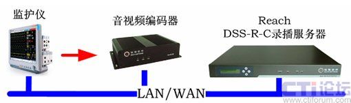 銳取遠(yuǎn)程醫(yī)療系統(tǒng)前端視音頻編碼器將采集到的手術(shù)室監(jiān)護(hù)儀的信號進(jìn)行實(shí)時(shí)編碼和壓縮,通過網(wǎng)絡(luò)傳送給多媒體錄播系統(tǒng)遠(yuǎn)程醫(yī)療系統(tǒng)后臺(tái)服務(wù)器上。