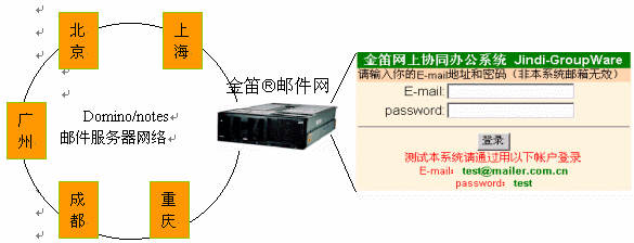 。1) 在不改變現(xiàn)有網(wǎng)絡(luò)硬件、軟件環(huán)境的情況下,添加一臺(tái)郵件網(wǎng)關(guān)服務(wù)器,通過統(tǒng)一的web登陸界面,輸入Email地址和密碼后,金笛?郵件網(wǎng)關(guān)會(huì)自動(dòng)根據(jù)內(nèi)部DNS找到該用戶所在的Domino Mail Server, 并通過標(biāo)準(zhǔn)郵件協(xié)議POP3提取該用戶的郵件,以web頁面形式顯示在用戶屏幕上。