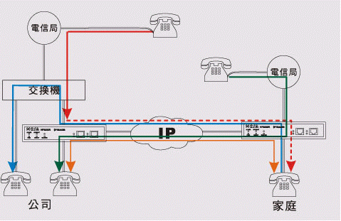 在家里亦可利用公司FONEMOSA遠(yuǎn)易通撥出電話(huà)及收聽(tīng)語(yǔ)音信箱 下班后若需處理公務(wù)而需撥打國(guó)際或長(zhǎng)途電話(huà),裝設(shè)FONEMOSA遠(yuǎn)易通之后便可將家里的電話(huà)當(dāng)成辦公室分機(jī),舉凡撥接國(guó)際或長(zhǎng)途電話(huà)、其它同仁分機(jī),或者聽(tīng)取您的語(yǔ)音留言等等都可。若是跨國(guó)性企業(yè)在海外有多個(gè)據(jù)點(diǎn),可以在各據(jù)點(diǎn)安裝FONEMOSA遠(yuǎn)易通,這樣既便在家里就如同在各據(jù)點(diǎn)上班一樣。(圖標(biāo):On-Net