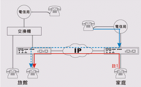 在旅館里亦可利用公司FONEMOSA遠(yuǎn)易通撥出電話(huà)及收聽(tīng)語(yǔ)音信箱 將FONEMOSA遠(yuǎn)易通在旅館房間裝設(shè)好后,可以在旅館里免費(fèi)使用各地分公司交換機(jī)所有功能,撥接電話(huà)就像在辦公室一樣,也可以撥接其它同仁分機(jī)電話(huà),或者聽(tīng)取語(yǔ)音留言,舉凡各類(lèi)公司交換機(jī)功能,在旅館里都一樣可以使用。(圖標(biāo): On-Net Call 網(wǎng)內(nèi)互打, 紅色線路)