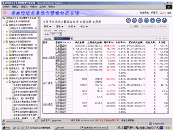它是按證券公司總部-證券營(yíng)業(yè)機(jī)構(gòu)-證券經(jīng)紀(jì)人-客戶的體系對(duì)證券經(jīng)紀(jì)業(yè)務(wù)進(jìn)行全面的管理和分析,是證券行業(yè)企業(yè)級(jí)科學(xué)管理、決策的支持系統(tǒng)。