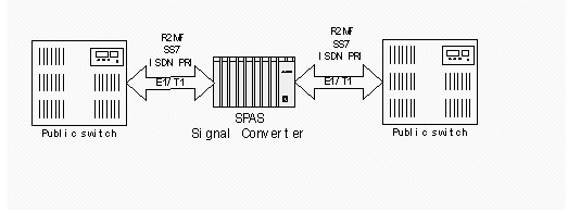 因?yàn)樾帕顦?biāo)準(zhǔn)不同,部分國(guó)外通信設(shè)備無(wú)法與國(guó)內(nèi)通訊網(wǎng)互通互連,SPAS-2000可編程交換機(jī)接口豐富,支持信令標(biāo)準(zhǔn)全面,成本低廉,可以為中國(guó)一號(hào)信令、七號(hào)信令、ISDN PRI(E1/T1)、環(huán)路信令、接入網(wǎng)V5信令等標(biāo)準(zhǔn)之間的轉(zhuǎn)換提供靈活完整的解決方案,同時(shí)當(dāng)輸入和輸出的中繼接口不同時(shí),其語(yǔ)音編碼可能不同,可利用多功能信號(hào)音板實(shí)現(xiàn)語(yǔ)音編碼的轉(zhuǎn)換(例如可以實(shí)現(xiàn)A LAW和U LAW之間的語(yǔ)音互轉(zhuǎn))。連接圖見(jiàn)圖1: