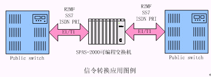 tyyy因為信令標(biāo)準(zhǔn)不同,部分國外通信設(shè)備無法與國內(nèi)通訊網(wǎng)互通互連,SPAS-2000可編程交換機(jī)接口豐富,支持信令標(biāo)準(zhǔn)全面,成本低廉,可以實現(xiàn)R2MF、SS7、ISDN PRA、CAS、接入網(wǎng)V5信令等標(biāo)準(zhǔn)之間的轉(zhuǎn)換。當(dāng)輸入和輸出的中繼接口不同時,其語音編碼可能不同,可利用多功能信號音板實現(xiàn)語音編碼的轉(zhuǎn)換。例如可以實現(xiàn)E1 A LAW和T1 U LAW之間的語音互轉(zhuǎn)。