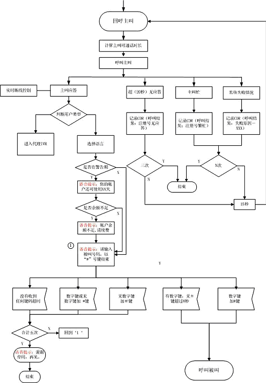 對接入系統(tǒng)的電話均進(jìn)行主叫識別,如果主叫沒有注冊,系統(tǒng)語音提示后,主動釋放電話 |
