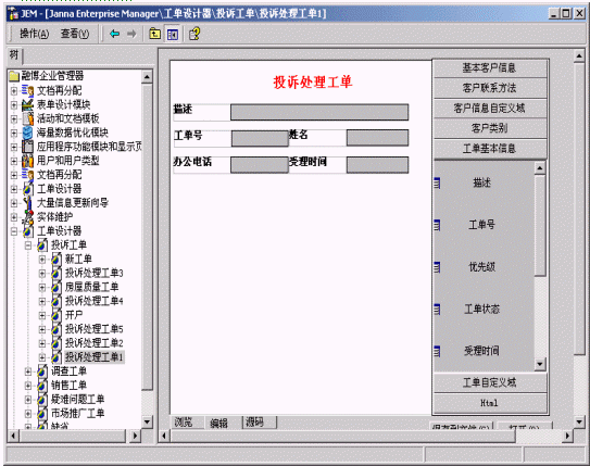 通過(guò)融博企業(yè)管理器的工單設(shè)計(jì)器可創(chuàng)造和設(shè)計(jì)任意活動(dòng)和任務(wù)相關(guān)界面,實(shí)現(xiàn)快速客戶化