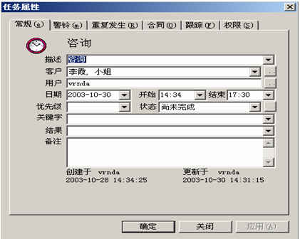對與客戶進(jìn)行的活動可進(jìn)行任務(wù)跟蹤和警鈴提醒。