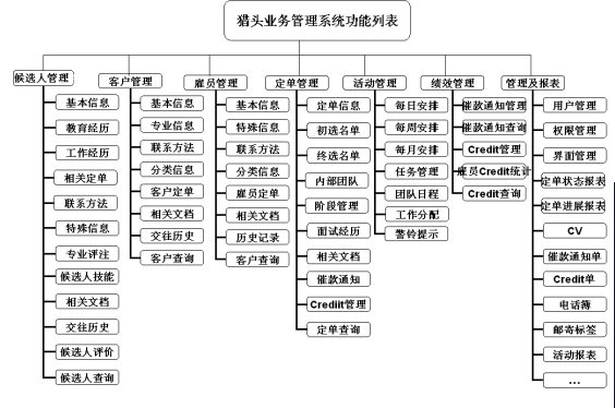 圖1獵頭業(yè)務管理系統(tǒng)功能框圖
