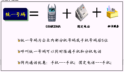 鐵路內(nèi)部員工可以統(tǒng)一所有的通信工具,只使用一個號碼,一次呼叫便可以完成通信,使通信更加簡單、可靠?梢詫崿F(xiàn)換機換網(wǎng)不換號,用戶獲得一個終身的聯(lián)系號碼,用戶無論更換任何通信工具,聯(lián)系號碼和方式不會改變。例如:在路局領導找下屬的時候,只需要撥打他的統(tǒng)一號碼,便可以直接找到他。不必考慮他是否在外出還是在辦公室,是否更換了手機號碼。統(tǒng)一號碼就像他員工號碼,始終不變,即撥即通!