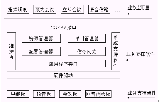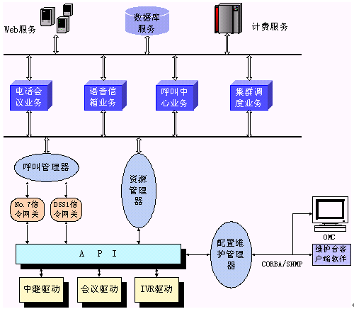 。。其中呼叫管理器通過CORBA技術(shù)向業(yè)務層提供2個軟件接口,資源管理器通過CORBA向業(yè)務層提供6個軟件接口。
