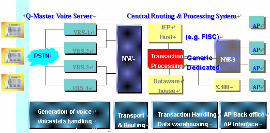 YesMobile的Q-system 包含了消費者端的酷管家Q-Master 以及企業(yè)端的Q-Center,它是一個信息化服務的系統(tǒng)平臺,它可以幫助解決多種存取裝置的問題。典型的用戶端設備就是酷管家(Q-Master),它是配備液晶顯示(LCD)的信息查詢及交易終端機,使用ADSI通訊規(guī)格,具有呈現(xiàn)聲音及資料的功能及提供親切的人機界面。