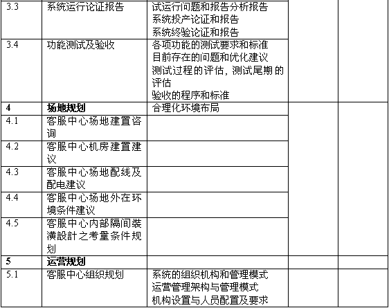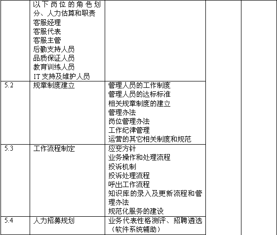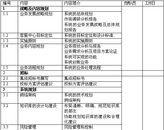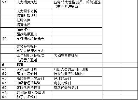 6.提出了未來客戶滿意度、分流柜面比率、產(chǎn)品促銷量等方面的量化比率;針對客服中心的主要業(yè)務(wù)提供量化的目標,并提出達成目標的前提條件;對未來人員和系統(tǒng)規(guī)模提供量化預估。