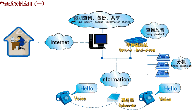 錄音記錄應(yīng)當(dāng)能夠方便地通過(guò)多種途徑回放,實(shí)現(xiàn)對(duì)錄音記錄資料的利用,這也是用戶配置電話錄音系統(tǒng)的最主要目的。回放可以通過(guò)我們公司開(kāi)發(fā)生產(chǎn)的選件手持播放器回放,通過(guò)網(wǎng)絡(luò)回放,通過(guò)聲卡在其它計(jì)算機(jī)上回放等多種方式來(lái)實(shí)現(xiàn)。