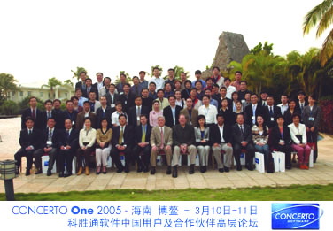 2005年3月11日,在絢麗的煙火、優(yōu)雅的水上芭蕾和來自全國金融、電信、航空、政府等70多位代表的掌聲中,Concerto One - 科勝通軟件2005中國用戶及合作伙伴高層論壇于風(fēng)景如畫的海南博鰲落下帷幕。