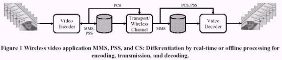 雖然新的服務(wù)如多媒體廣播/組播服務(wù)(MBMS)是未來無線網(wǎng)絡(luò)的發(fā)展計(jì)劃,但我們被約束成單一的應(yīng)用程序接受者。移動(dòng)手持設(shè)備受處理器速度和存儲(chǔ)容量的限制,因此,移動(dòng)視頻編碼的設(shè)計(jì)必須以最低復(fù)雜度和最高效率為目標(biāo)。正如其它文章所討論的復(fù)雜問題一樣,我們將自己約束在傳輸和工具上。以上三點(diǎn)定義的應(yīng)用可以在預(yù)定的的傳輸帶寬里面,最大限度地允許端到端的時(shí)延,在不同的系統(tǒng)結(jié)構(gòu)有不同的結(jié)果,一個(gè)簡(jiǎn)單的圖示如圖一。