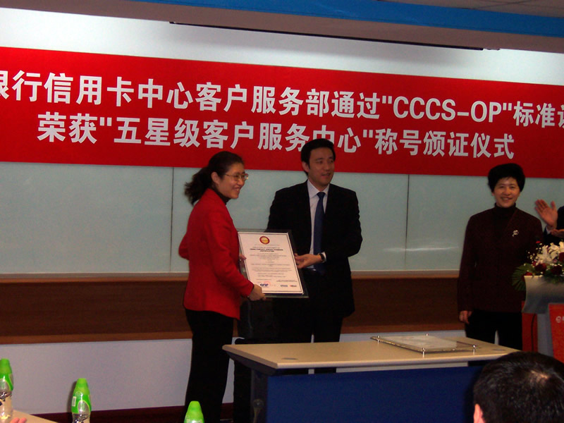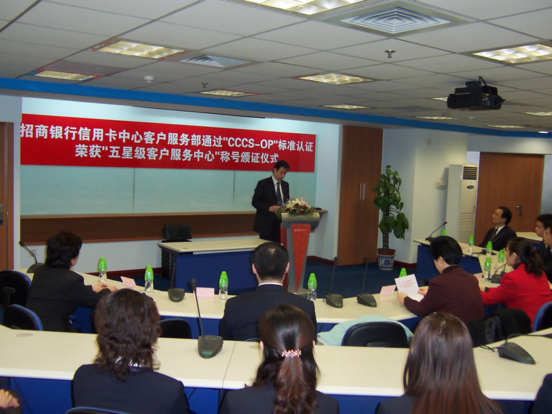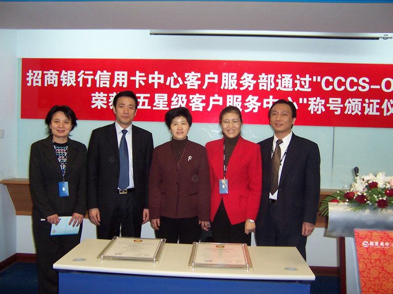 經(jīng)過長達(dá)8個(gè)月時(shí)間的準(zhǔn)備和嚴(yán)格的認(rèn)證審核,由中國信息化推進(jìn)聯(lián)盟客戶關(guān)系管理專業(yè)委員會常務(wù)副主任郭晨東先生親自掛帥組成的項(xiàng)目評審專家小組從領(lǐng)導(dǎo)能力、戰(zhàn)略規(guī)劃與部署、客戶價(jià)值、績效衡量與分析、現(xiàn)場管理、人員管理、流程管理、運(yùn)營績效結(jié)果等八個(gè)范疇對招商銀行信用卡中心客戶服務(wù)部進(jìn)行了全面而嚴(yán)格的審核,涉及五大類上百項(xiàng)詳細(xì)的運(yùn)營績效指標(biāo),歷經(jīng)初審評估、現(xiàn)場初審、初審評估報(bào)告提交與確認(rèn)、標(biāo)準(zhǔn)試運(yùn)行、績效全面提升、最終評審等階段,最終審核確認(rèn)招商銀行信用卡中心客戶服務(wù)完全符合并部分超越《全國呼叫中心運(yùn)營績效標(biāo)準(zhǔn)》(CCCS-OP-2003)的各項(xiàng)標(biāo)準(zhǔn)指標(biāo)和要求,于2005年1月31日正式批準(zhǔn)招商銀行信用卡中心通過該標(biāo)準(zhǔn)的五星級認(rèn)證,授予“五星級客戶服務(wù)中心”稱號。