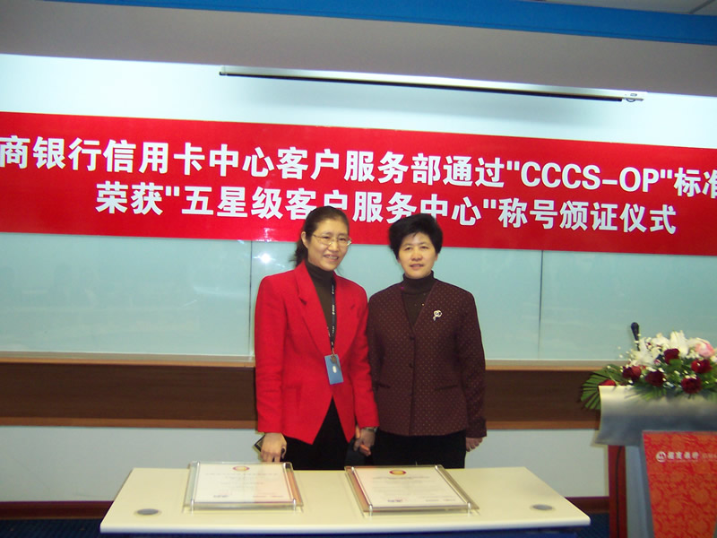 招商銀行信用卡中心客戶服務(wù)中心(800-820-5555)成立于2002年,是集電話服務(wù)熱線、傳真、電子郵件、短信服務(wù)以及互聯(lián)網(wǎng)等客戶溝通渠道于一體的多功能客戶服務(wù)中心,為所有招商銀行信用卡用戶提供365×24×7全年無休的優(yōu)質(zhì)客戶服務(wù),曾榮獲“2004中國最佳呼叫中心”稱號。作為中國銀行業(yè)率先加入CCCS標(biāo)準(zhǔn)認(rèn)證體系的企業(yè),通過此次認(rèn)證,一方面使得招商銀行客戶服務(wù)中心的運(yùn)營管理水平進(jìn)一步得到了提升和改善,實(shí)現(xiàn)規(guī)范化、精細(xì)化;另一方面,CCCS標(biāo)準(zhǔn)也從該公司在客戶服務(wù)和客戶關(guān)系管理方面所積累起來的寶貴實(shí)踐經(jīng)驗(yàn)中汲取了養(yǎng)分,使CCCS標(biāo)準(zhǔn)能夠不斷地完善和發(fā)展。