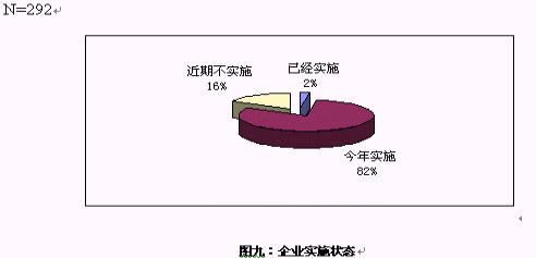 對(duì)大多數(shù)企業(yè)來(lái)說(shuō),對(duì)CRM還處于關(guān)注階段,只有7家企業(yè)表示已經(jīng)開始實(shí)施,在電話訪問(wèn)中,了解到這7家企業(yè)的實(shí)施的主要是在渠道管理和客戶呼叫中心等方面,但表示今年會(huì)開始實(shí)施的卻超過(guò)8成。