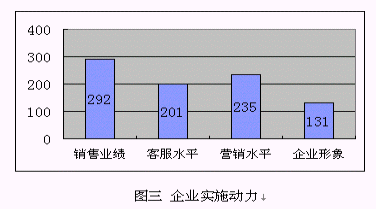 3) 提升企業(yè)形象:很多受訪企業(yè)特別是服務(wù)業(yè),已經(jīng)建立客戶忠誠(chéng)度放在了很重要的位置,但比較其它幾個(gè)直接動(dòng)因,比例偏低,這也說(shuō)明"以客戶為中心"的觀念還沒(méi)有"以利潤(rùn)為中心"強(qiáng)烈。