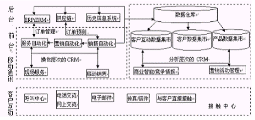 在企業(yè)中對(duì)于客戶關(guān)系資源管理方面可歸納為兩個(gè)方面的問(wèn)題。其一,企業(yè)的銷售、營(yíng)銷和客戶服務(wù)部門難以獲得所需的客戶互動(dòng)信息。其次,來(lái)自銷售、客戶服務(wù)、市場(chǎng)、制造、庫(kù)存等部門的信息分散在企業(yè)內(nèi),這些零散的信息使得無(wú)法對(duì)客戶有全面的了解,各部門難以在統(tǒng)一的信息的基礎(chǔ)上面對(duì)客戶。這需要各部門對(duì)面向客戶的各項(xiàng)信息和活動(dòng)進(jìn)行集成,組建一個(gè)以客戶為中心的企業(yè),實(shí)現(xiàn)對(duì)面向客戶的活動(dòng)的全面管理。