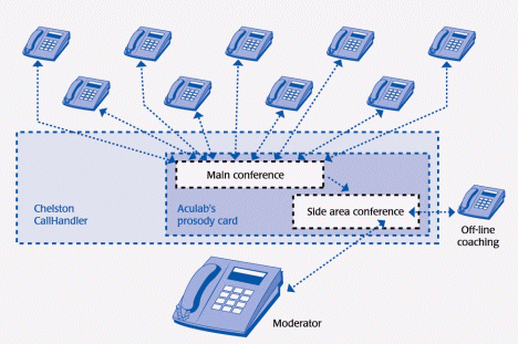 Chelston Call Systems 為RNIB 建立了基于CallHandler-720平臺、并附有錄音設(shè)施的會議橋。CallHandler-720是由Aculab Prosody DSP資源板卡集成的,采用開放的架構(gòu)并可通過萬維網(wǎng)進行控制。