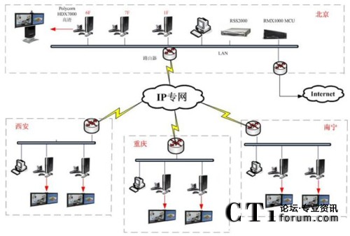 MCU,1臺RSS2000錄播服務器,9臺HDX7002XL組成,在應用上分為兩部分:主要核心設備---采用寶利通(POLYCOM)最新技術(shù)的多點控制單元RMX1016C及高清錄播RSS2000,滿足培訓中心對整個系統(tǒng)的會議召集及管理,系統(tǒng)還可以進行高清的錄播直播,把相關(guān)的培訓內(nèi)容制作成培訓課件存檔分發(fā)給培訓學員;其他各地單位設備:分別采用高清硬件終端HDX7002及高清實物展臺、高清DV等各類會議室設備,終端支持雙流、實物展臺及移動DV圖像的輸入,根據(jù)不同的培訓需求切換不同的圖像場景,為培訓中心設計了一套完整視頻培訓解決方案。