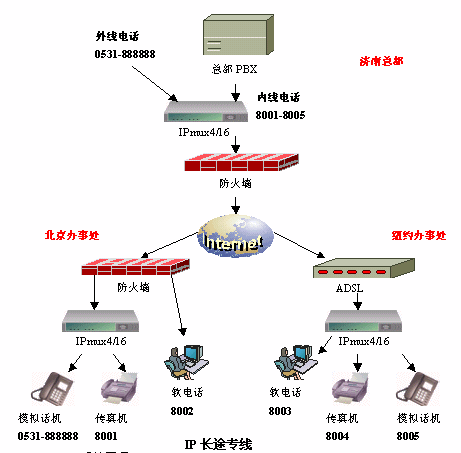 IP長途專線系統(tǒng),完全針對(duì)政府、企業(yè)等的駐外辦事機(jī)構(gòu)與總部之間的密切聯(lián)系而設(shè)計(jì),使辦事處輕松擁有來自總部的長途電話專線,令溝通更加迅捷,而且完全免除長途話費(fèi)的困擾,安裝和使用都極其簡單,無需對(duì)原有電話設(shè)備進(jìn)行任何改造。