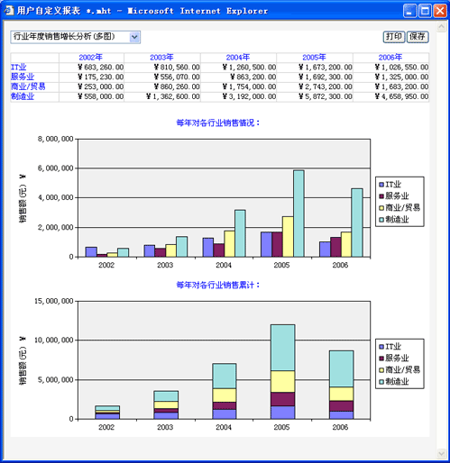 用戶(hù)有N個(gè)理由,要求CRM客戶(hù)關(guān)系管理系統(tǒng)輸出的報(bào)表(Report)可以嵌入圖表(Chart),就像下圖示例一樣,一方面用數(shù)據(jù)精確地展現(xiàn)統(tǒng)計(jì)分析結(jié)果,另一方面用圖形直觀地進(jìn)行表達(dá)。