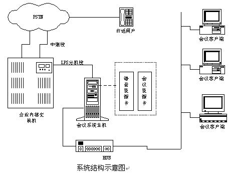 一般傳統(tǒng)電話會議的實現(xiàn)均利用企業(yè)內(nèi)部交換機(jī)(PBX)的多方通話功能(三方、四方或更多方),但有很大的局限性(如參加會議的人數(shù)有限,一般交換機(jī)不能超過8方,異地外線參加會議不方便、信號音相互干擾、模擬外線掛機(jī)不準(zhǔn)確,長期占用外線、操作煩瑣等),使用戶在使用過程中遇到很多不方便。目前還有一種遠(yuǎn)程會議系統(tǒng)是專用的可視電話會議系統(tǒng),這種系統(tǒng)可以將圖像與聲音同時傳送,使用戶有親臨會場的感覺,但是它要有專用的會議中心、專用的會議終端設(shè)備以及專用的信息傳輸線路,系統(tǒng)造價和使用費用均相當(dāng)高,一般用戶難以承受。