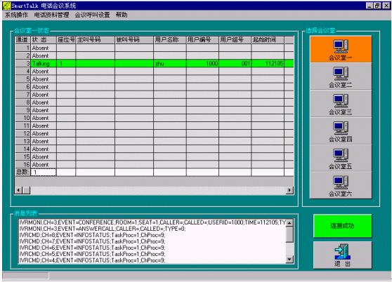 管理員只需將候選人員加入到左邊的會議人員中,再點擊"呼叫"按扭即可建立會議,系統(tǒng)自動呼叫會議各方的電話號碼,呼通后將自動加入設(shè)置的會議室,呼叫失敗自動重新呼叫;