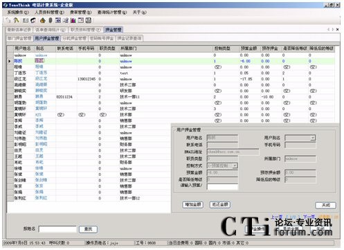 系統(tǒng)提供話費的預算控制和預存控制(押金管理)功能,用戶可以選擇使用其中一種或都不使用,當電話費用達到設定的費用金額,系統(tǒng)按照設定的處理方式(降低分機撥打電話的等級)進行。