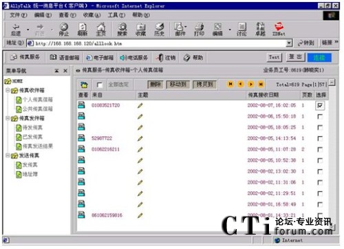 以下為AllyTalk統(tǒng)一消息傳真服務接收傳真的顯示界面: