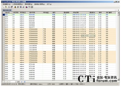 系統(tǒng)提供多種查詢條件,進行話單明細和話單結算的統(tǒng)計,如:按分機、部門、密碼、職員名稱、出現(xiàn)號碼、通話時間范圍、通話費用范圍、制定主叫、制定被叫、不同的通話類型(國內長途、國際長途、市話、IP等)。