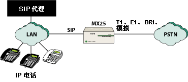 MX25 可以提供模塊化 SIP 網(wǎng)關(guān)的功能,這對(duì)于企業(yè)的許多應(yīng)用程序是很有益的。其撥號(hào)計(jì)劃實(shí)現(xiàn)了多個(gè) SIP 服務(wù)器(內(nèi)部和外部)以及電話(huà)電路之間的路由,這使得它幾乎可以在每一個(gè) VoIP 應(yīng)用程序中工作。