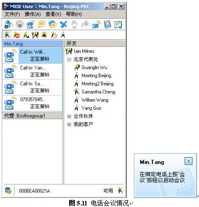 系統(tǒng)提供了靈活的電話會(huì)議方式,例如:總經(jīng)理發(fā)起一個(gè)電話會(huì)議,公司的IT主管、客戶經(jīng)理參加,當(dāng)聊到IT方面時(shí),需要具體的負(fù)責(zé)人來(lái)解答一些問(wèn)題,IT主管可以用MXIE或話機(jī)將他加入到會(huì)議中來(lái),回答完畢后,他可以自己掛機(jī)退出會(huì)議,IT主管也可以將他退請(qǐng)出會(huì)議,而會(huì)議不會(huì)中斷。
