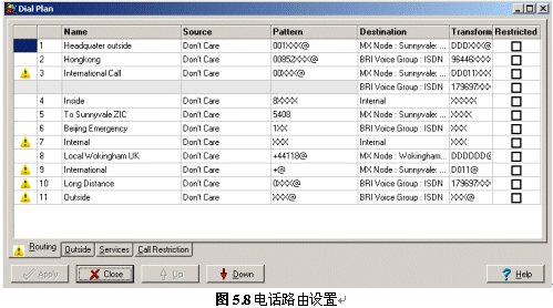 管理員還可以設(shè)定所有電話的處理規(guī)則,如:電話的路由規(guī)則(節(jié)約費(fèi)用)、多點(diǎn)間使用的語(yǔ)音壓縮方式(節(jié)約帶寬)等。