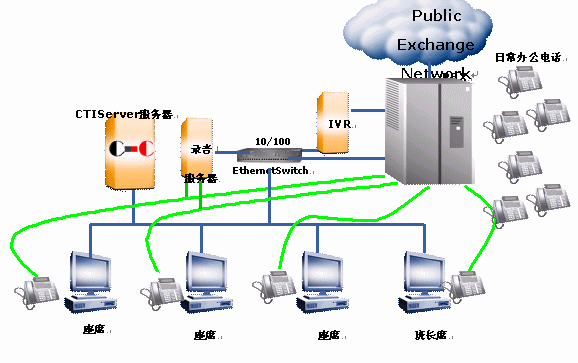 二、呼叫中心的網(wǎng)絡(luò)結(jié)構(gòu)如下: