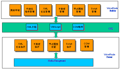 Service)等。客戶使用VoiceRoute應(yīng)用,一方面可以通過(guò)語(yǔ)音和傳真與客戶進(jìn)行交互,完成一些自動(dòng)業(yè)務(wù)的受理;另一方面通過(guò)和客戶交互,可收集客戶的各種信息和客戶的具體請(qǐng)求,為進(jìn)一步處理提供數(shù)據(jù)支持。VoiceRoute是基于SML構(gòu)建的VoiceRoute應(yīng)用生成、解釋及運(yùn)行平臺(tái),SML(SynRoute