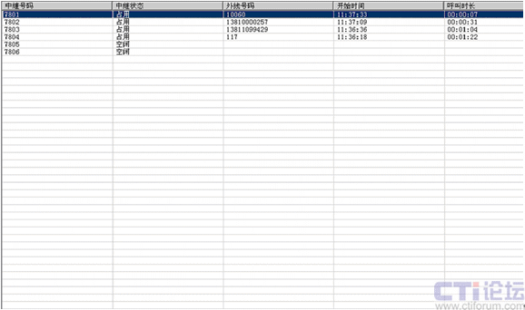 如圖3所示,管理員能得到中繼來電的明細信息,來電號碼,來電時長,都有詳細數(shù)據(jù)。