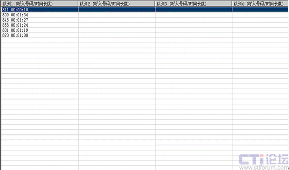 如圖4所示,管理員能得到隊列排隊的詳細信息如:來電號碼,等待時間。