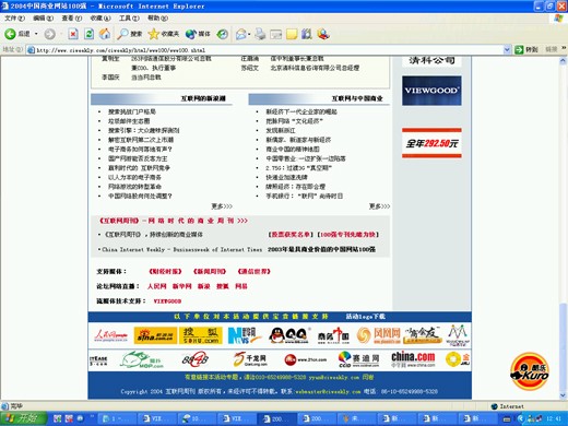 以互聯(lián)網(wǎng)的發(fā)展為推動,網(wǎng)絡時代的商業(yè)變革逐漸深入,產(chǎn)業(yè)融合趨勢逐漸清晰,并由此而引發(fā)了新一輪的互聯(lián)網(wǎng)投資與應用熱潮。10月22日,互聯(lián)網(wǎng)周刊主辦的"2004中國商業(yè)互聯(lián)網(wǎng)發(fā)展論壇“暨’2004中國商業(yè)網(wǎng)站100強”頒獎盛典將在天倫王朝舉行。