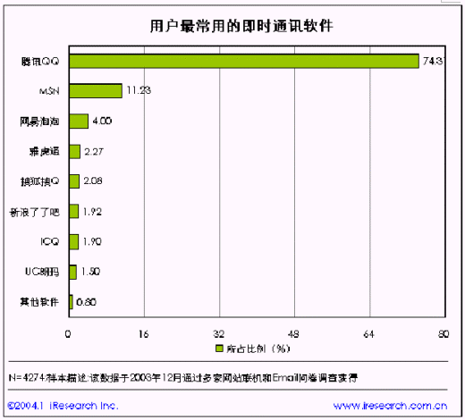 根據(jù)不完全統(tǒng)計,2003 年中國即時通訊軟件的最高在線人數(shù)已經(jīng)突破了550 萬人。其中,QQ、MSN Messenger、網(wǎng)易泡泡、UC 朗瑪這四個即時通訊軟件占據(jù)了市場的絕大部分份額。我們預(yù)計未來隨著中國上網(wǎng)人口的增長,以及IM