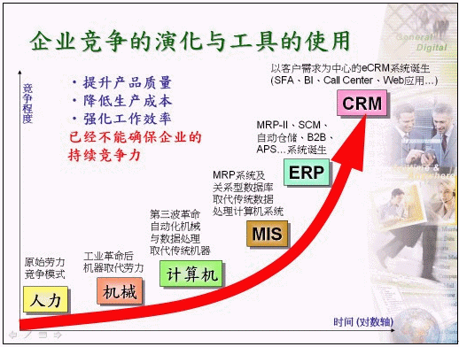 過去企業(yè)為取得同業(yè)間之競爭優(yōu)勢(shì),無不絞盡腦汁針對(duì)『產(chǎn)品質(zhì)量』、『生產(chǎn)成本』及『工作效率』等作為主要改善目標(biāo),除了從本身管理制度的檢討改進(jìn)外,同時(shí)也積極運(yùn)用現(xiàn)代信息科技的力量,規(guī)劃出適合自己的企業(yè)e化版圖,以因應(yīng)全球化競爭時(shí)代的來臨,在此同時(shí)許多信息系統(tǒng)也逐步推動(dòng)導(dǎo)入企業(yè)內(nèi)部,包括:早期的MIS系統(tǒng)、近期的ERP系統(tǒng)、甚或電子簽核系統(tǒng)等,主要目的為提升內(nèi)部工作效率、節(jié)省內(nèi)部生產(chǎn)成本等作準(zhǔn)備,以『節(jié)流』為目標(biāo)強(qiáng)化企業(yè)自身的競爭能力。
