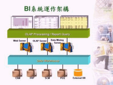 因此,『商業(yè)智慧』這個(gè)名詞近一、二年來已經(jīng)開始大行其道,尤其許多中、大型企業(yè)為了將自己辛苦建置的信息化資產(chǎn)加以妥善運(yùn)用,以期能提供企業(yè)高層主管及其它相關(guān)單位人員豐富的決策信息,進(jìn)而縮短其決策時(shí)間。有鑒于此,許多企業(yè)編列不少年度預(yù)算投入BI系統(tǒng)的采購,但只僅僅將企業(yè)內(nèi)部ERP系統(tǒng)的數(shù)據(jù)庫加以匯整至數(shù)據(jù)倉儲(chǔ)(Data
