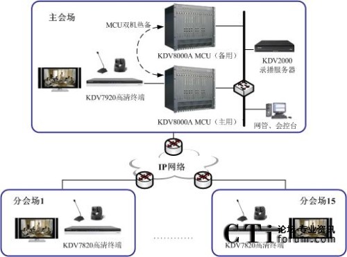 在充分了解用戶應(yīng)用需求的基礎(chǔ)上,2011年初科達(dá)為青島工商局規(guī)劃部署了一套高清視頻會議系統(tǒng)。其中,為了進(jìn)一步提升用戶的遠(yuǎn)程溝通體驗和交互感,科達(dá)在市局主會場部署了1臺KDV7920高清視頻會議終端,在下屬14個分(市)局以及工商所分會場則各部署了1臺KDV7820高清視頻會議終端;而考慮到青島工商對于系統(tǒng)安全性、穩(wěn)定性方面的較高要求,科達(dá)則為其部署了 2臺KDV8000A多點控制單元(MCU)以實現(xiàn)雙機熱備;此外,系統(tǒng)還部署了KDV2000錄播服務(wù)器,以實現(xiàn)會議、培訓(xùn)過程的錄像和點播。整個系統(tǒng)通過工商局內(nèi)部的專網(wǎng)實現(xiàn)視音頻溝通和數(shù)據(jù)共享。
