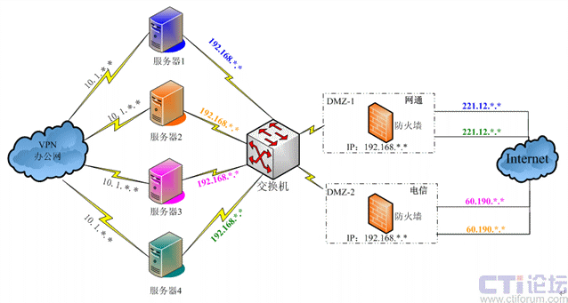 安邦保險在全國各地共37個分支機構(gòu),網(wǎng)絡(luò)結(jié)構(gòu)復雜,有電信用戶、網(wǎng)通用戶以及VPN專網(wǎng)用戶等,系統(tǒng)平臺的搭建要能夠?qū)崿F(xiàn)不同網(wǎng)絡(luò)間實時快速的溝通。
